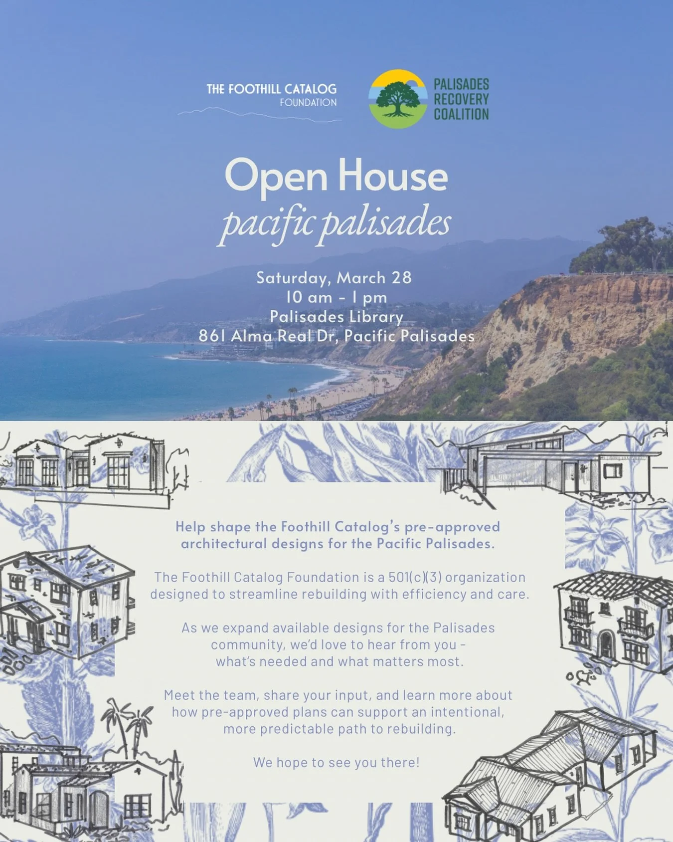 The Foothill Catalog is a collection of pre-approved home designs for displaced residents to rebuild quickly and affordably, while retaining their community identity and local architectural character.