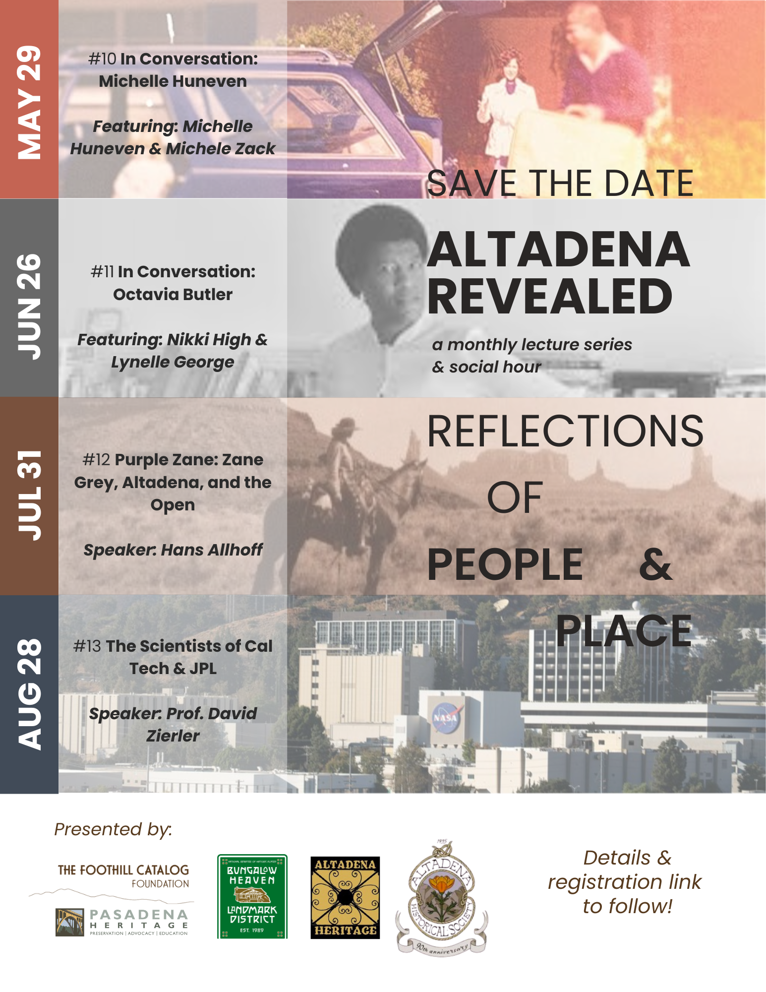 The Altadena Revealed Lecture Series will be back on May 29th - and we have an amazing line up of speakers over the next several months covering a range of topics from Altadena’s famous authors to scientists.